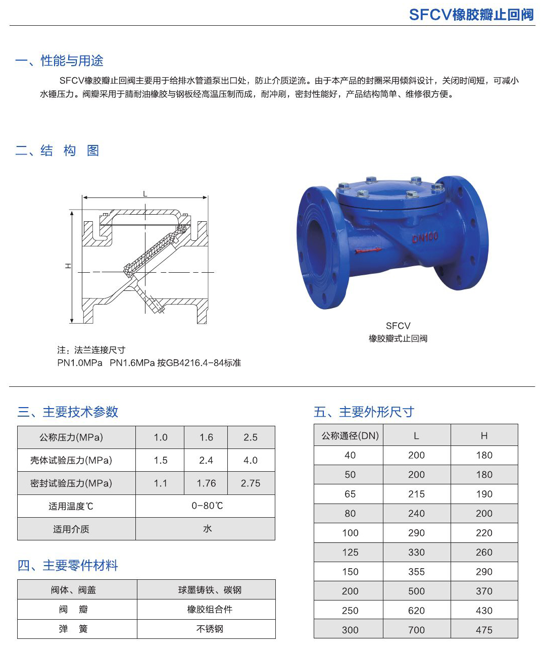 - SFCV橡膠瓣止回閥主要用于給排水管道泵出口處,防止介質(zhì)逆流。同于本產(chǎn)品的封圈采用傾斜設(shè)計(jì),關(guān)閉時(shí)間短,可減小水錘壓力。閥瓣采用于腈耐油橡膠與鋼板經(jīng)高溫壓制而成,耐沖刷,密封性能好,產(chǎn)品結(jié)構(gòu)簡單、維修保養(yǎng)很方例。