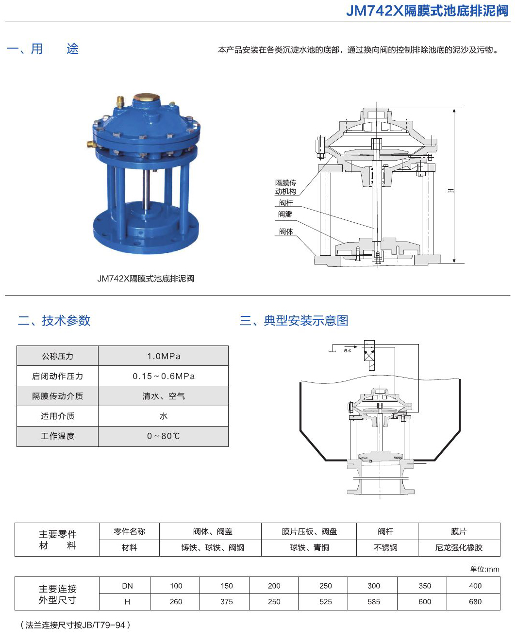 - 本產(chǎn)品安裝在各類沉淀水池的底部,通過(guò)換向閥的控制排除池底的泥沙及污物。
